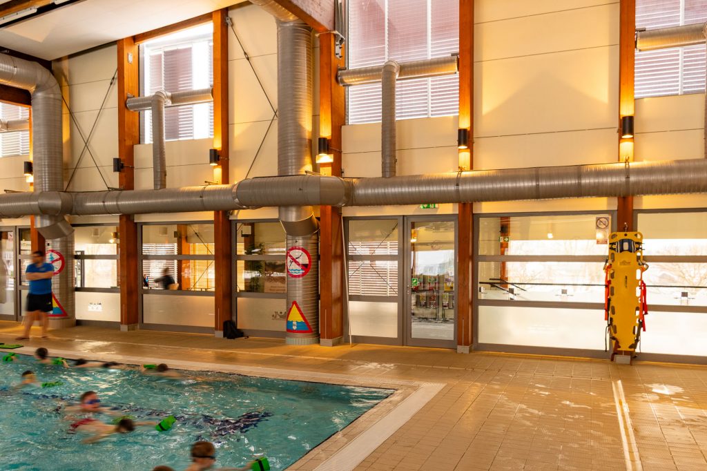 Nowe kinkiety poprawiły doświetlenie stref komunikacyjnych i ścian obiektu, tworząc równomierne, nieoślepiające światło sprzyjające komfortowi użytkowników. Z kolei system lamp liniowych zapewnił odpowiedni poziom natężenia oświetlenia nad niecką basenową oraz w przestrzeniach technicznych.