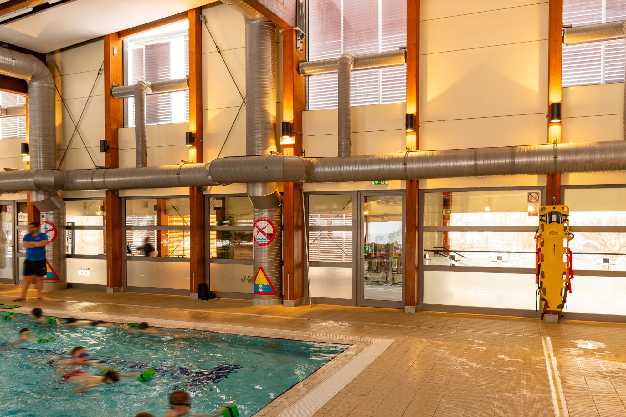 Nowe kinkiety poprawiły doświetlenie stref komunikacyjnych i ścian obiektu, tworząc równomierne, nieoślepiające światło sprzyjające komfortowi użytkowników. Z kolei system lamp liniowych zapewnił odpowiedni poziom natężenia oświetlenia nad niecką basenową oraz w przestrzeniach technicznych.